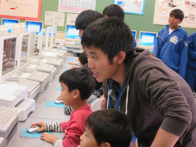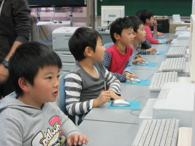 2年生が、かけ算九九の勉強をパソコンを使って、楽しそうに学習していました。とても大切なかけ算九九なので、しっかり覚えて楽しく活用しましょう。大学生も、中学生も手伝ってくれました。