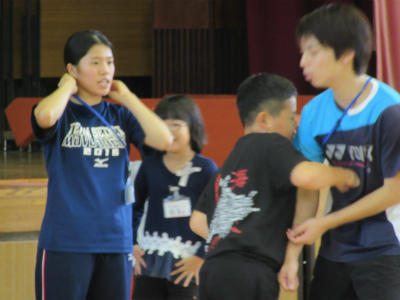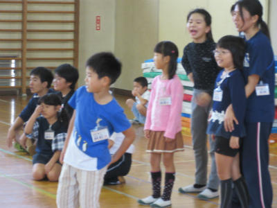 運動では、大学生のお兄さんたちと、おにごっことボールあての混ざったようなゲームをしていました。低学年の子どもたちも、ルールをよく知り、楽しんでいました。
