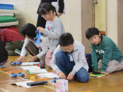 3年生が、理科の実験でゴムで動くおもちゃをやっていました。ゴムの本数を変えたり、ゴムの引く長さを変えたりして、実験をしていました。とても楽しそうでした。