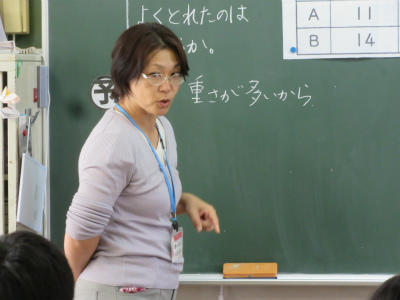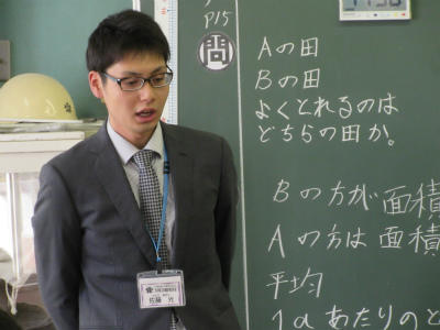 2組の教室では、1aあたりのとれ高に着目して、考えを深めていました。1人1人の頑張りがとても目立ちました。