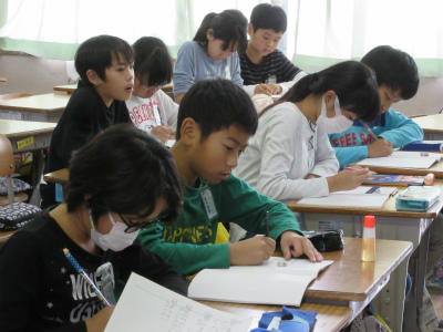 今日、5年生の研究授業でした。5年生は、3つのクラスに分かれて、学習を進めています。1組の教室では、子どもたちが真剣に取り組んでいる様子がとてもよく分かりました。