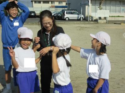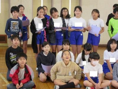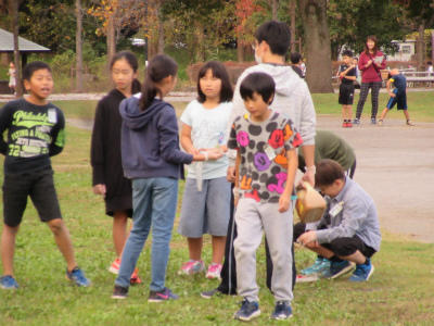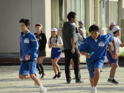 3daysチャレンジの職業体験で、葛中生が7名来ています。朝から、小学生と一緒にマラソンやリレーをやってくれていました。落ち葉はきも、一生懸命取り組んでいました。