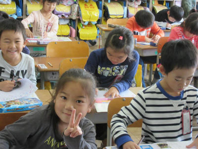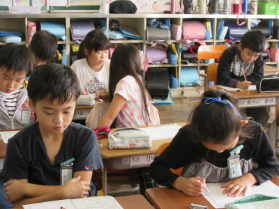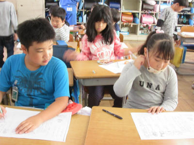 2年生は、言葉の学習のプリントをやっていました。主語や述語になる言葉などをしっかり探していました。1つ1つの学習が、とても大切ですね。