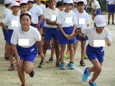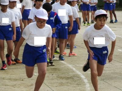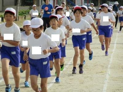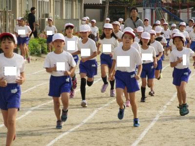 5分間走で、3分……4分…というあたりがいちばんきついですが、さらに力をつけるために、一段と速く走るようにしています。最後は、行進をして教室にもどります。