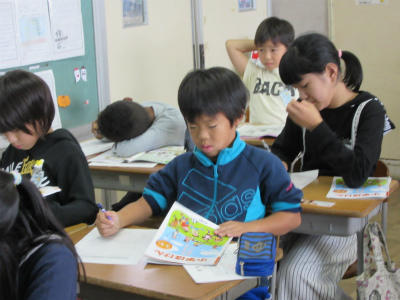 2年生の読み聞かせは、『なぞなぞ100このほん』というお話を読んでくださっていました。子どもたちの好きなお話みたいで、よ~く聞いていました。