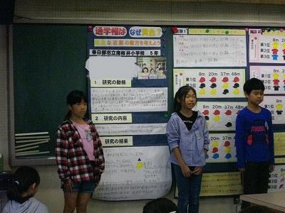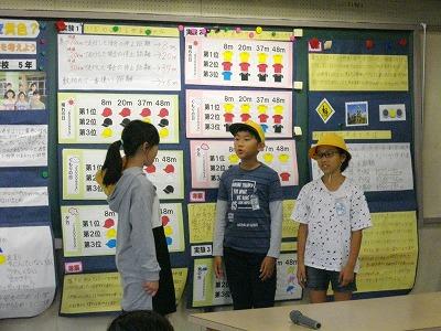 「通学帽はなぜ黄色? ~安全な衣服の着方を考えよう~」のタイトルで出場した5年生が見事、最優秀賞を獲得しました。
