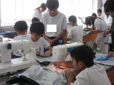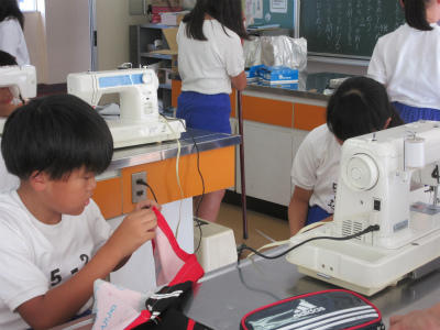 5年生が、初めてのエプロン作りに挑戦していました。しつけ糸をして、ミシンの直線縫いを頑張っていました。早くできあがるといいですね。