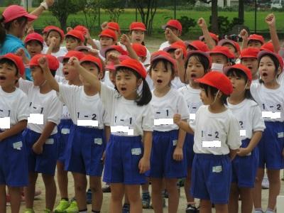 3年生と4年生のソーラン節も、ほぼ最後までできています。力が入って、しっかり踊れるようになりました。すごい気合です。曲の最後は、全員が中央に集まってきます。