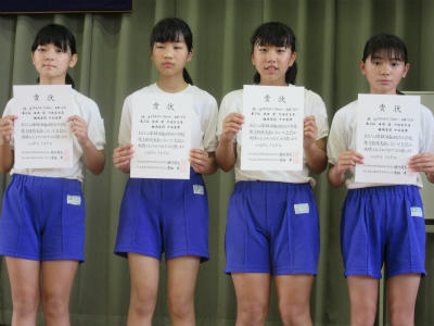 今日、市内陸上大会の表彰を行いました。各種目ごとに表彰を行い、賞状を伝達しました。表彰の数の多さにとても驚いた日でした。みんな、よく頑張りました。