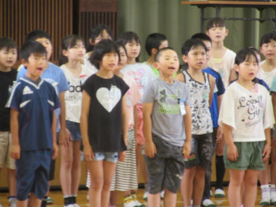 今日、音楽朝会がありました。発表は、4年生でした。『ゆかいに歩けば』の音を切って歌う歌い方を練習しました。4年生の発表もとてもきれいな歌声でした。