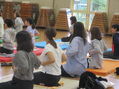 PTAの教養文化委員会の主催で、健康体操『自彊術』の動作の講習会がありました。体操と呼吸法で、より健康になることを指導していただきました。