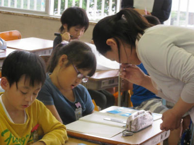3年生が、暗算の学習の研究授業をしました。100-79の暗算をどう考えるか、たくさんの考えを出して、ペア学習、全体での練り上げをやっていました。