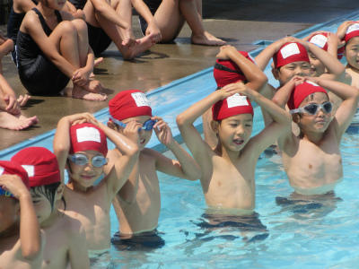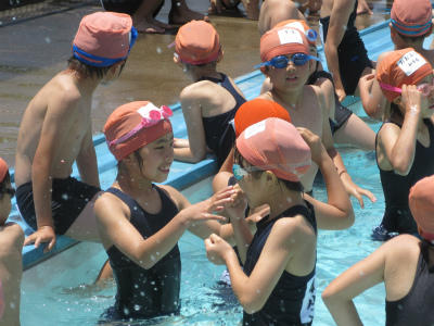 4年生も、今日が初めてのプールでした。何回も泳いで、最後に自由時間になりました。1人1人がとても喜んでいました。