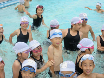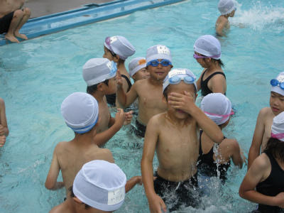 2年生が、初の水泳学習をやりました。朝から、『入りたい』、『入りたい』という声が多く聞こえてきて、入ることが決まり、大喜びでした。