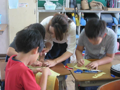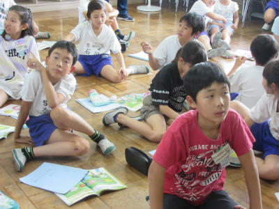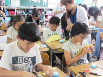 5年生が、裁縫道具を使って、玉どめ・玉結びの練習をやっていました。男の子も、悪戦苦闘しながらも、頑張ってやっていました。ボランティアのお母さん方、ありがとうございました。