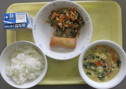 本日の献立は、黒パン、ポテトカップのグラタン、レンフォアタン、ツナサラダ、牛乳でした。レンファータンとは、「連花湯」と書きます。具だくさんの中華風かき玉スープのことです。