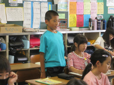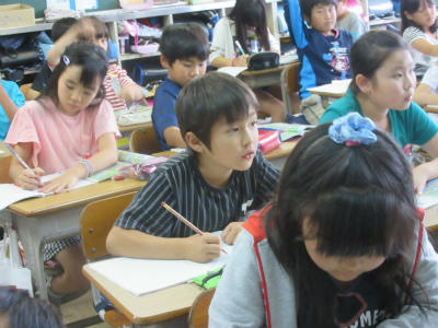 4年生は、社会科で埼玉県の学習をしています。どのような工夫をしているか、挿し絵を見ていろいろな意見を出していました。