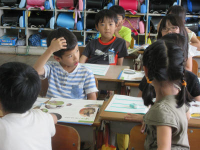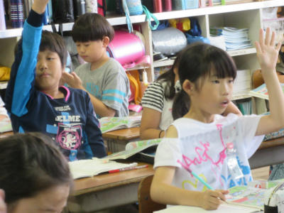 2年生が、『しぜんのいのち』という題材で、道徳の授業をやっていました。全員で購入した道徳のノートで、1人1人が動物の命について、意見を言っていました。