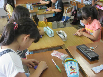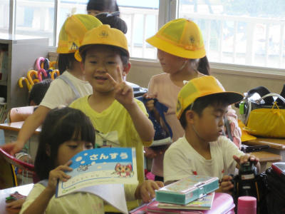 1年生が、5時間目が終わって、5分で帰りの支度をしましょう!と言われていました。1日が終わると、ほっとしてとてもうれしそうです。