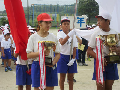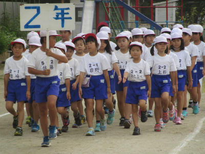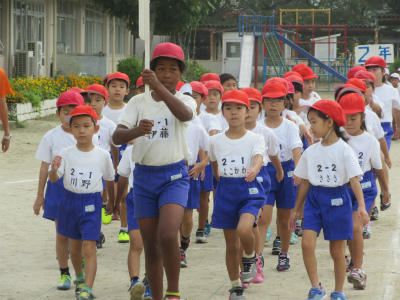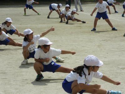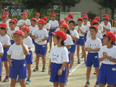 入場行進が終わったあと、開会式の練習と閉会式の練習をしました。代表児童にあわせる所や勝敗の行方などを確認しました。