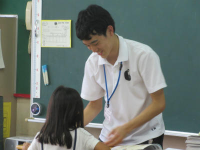 ふれあい体験の学生が、今日は、1年生に入りました。とても小さい1年生なので、すごくかわいがっていました。学年によって、発達段階が違うので、とても勉強になったようです。