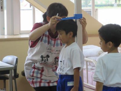 1年生が発育測定を行っていました。42日間の夏休みで、1人1人がとても大きくなったようです。いっぱい食べて、いっぱい運動して、大いに成長してください。