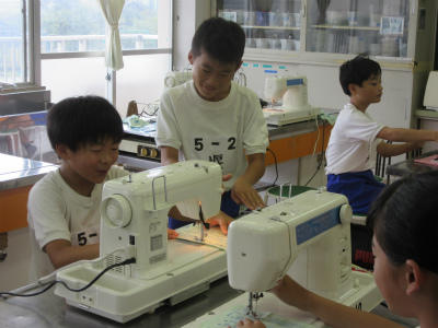 5年生が、初めてミシン学習に挑戦していました。今日は、直線縫いで、練習布をしっかり縫っていました。多少曲がってしまった子もいましたが、よく頑張っていました。
