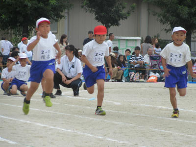 小学校初めての運動会、50m走、タッタのダンス、紅白玉入れとよく頑張ってくれました。日々成長している1年生です。