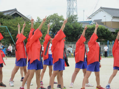 紅白応援合戦の練習がありました。紅組の応援は、とても大きな声が出ていました。団長を中心によく頑張っていました。
