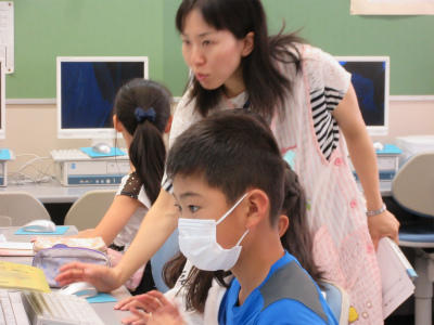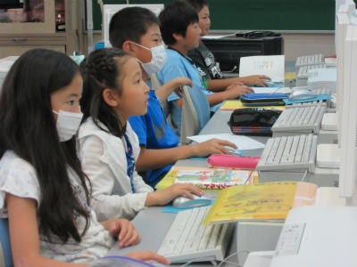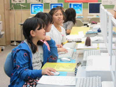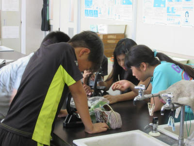 6年生が、理科の実験で葉の気孔の学習をしていました。ツユクサを使って、葉の表と葉の裏の気孔を調べていました。よく見えて、楽しそうでした。