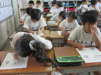 朝の15分で、チャレンジタイム・算数を行いました。どのクラスも、シーンとして中で、プリントへの書き込みが始まりました。よく頑張りました。