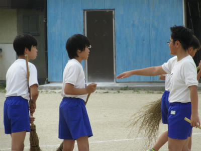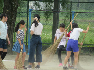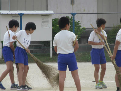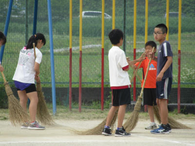 今日、朝から6年生は、陸上大会の前日準備を行いました。ほうきで細かい土を除き、校庭をしっかり整備しまいした。