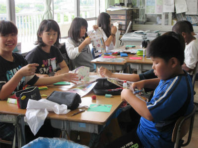 5年生も、「今日、やりたかった。」という顔をしていました。図工で、広告を使って、素敵なデザインの作品を作っていました。