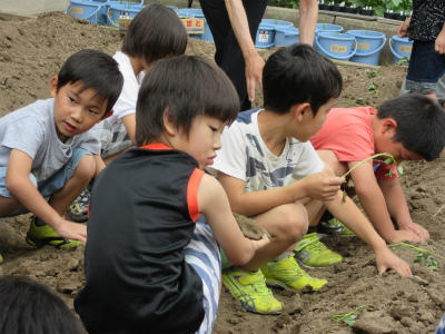 2組も、さつまいもの苗を植えました。秋に収穫して、1年生を招待して、おいもパーティをするそうです。楽しみですね。
