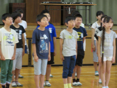 5年生70人の歌声が、体育館中に響きわたりました。練習の成果があって、とてもきれいな歌声でした。6年生の感想発表でも、歌声を褒めていました。