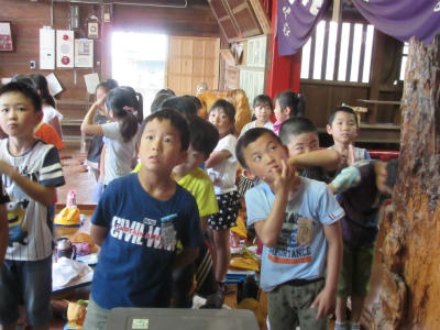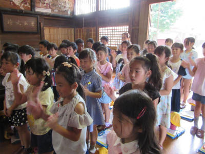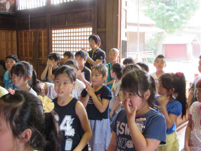 その後、近くの神社の見学に行ってきました。お参りの仕方を教わったり、外にある富士山の石でできた岩の話を聞いたりしてきました。社の中にまで入れてもらい、大変勉強になりました。