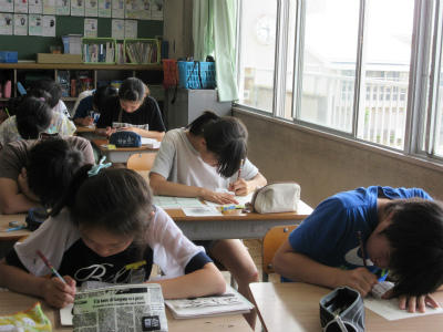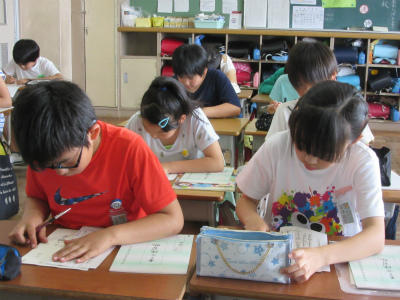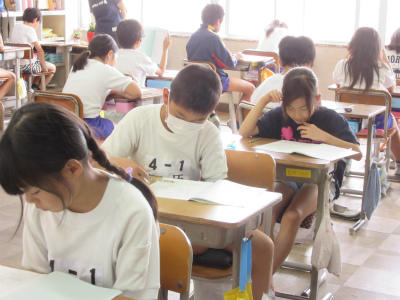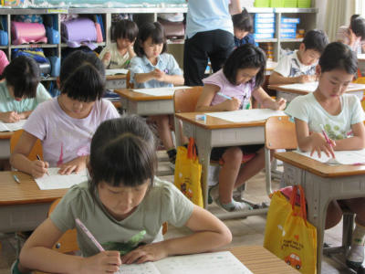 2年生と4年生が集中して、知能テストに励んでいました。1つ1つ問題をしっかりつかんで取り組んでいました。