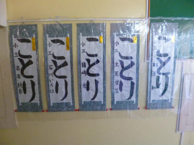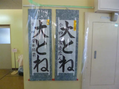 一生懸命に頑張った南小っ子の書きぞめが校長室廊下に掲示されています。