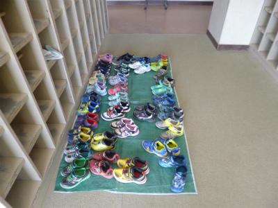 「元気なあいさつ」「くつを揃えよう」皆さん、頑張りましょう。