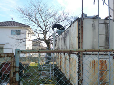 先日、寒波で凍結した受水槽の保温工事が行われています。