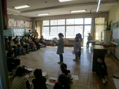 すずらん幼稚園の年長さんと本校の1年生と5年生が、楽しい交流をしています。