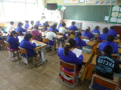 第2校時、3年生から6年生児童を対象に、春日部市算数・数学学力向上検証テストが行われています。