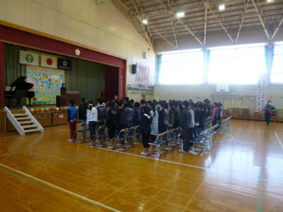 証書授与の練習では、1組も2組も「はい」とよい返事が聞こえています。