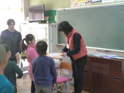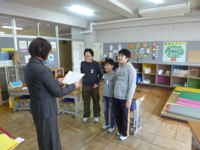 がんばったひまわり学級のみなさんへ、校長先生から感謝状が贈られました。