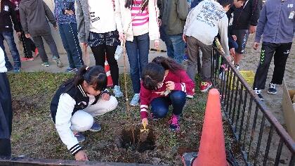 6年生が卒業記念として八重桜とヤマボウシの木を植樹しました。卒業生の成長とともに伸びていくでしょう。花を咲かせることを楽しみにしています。