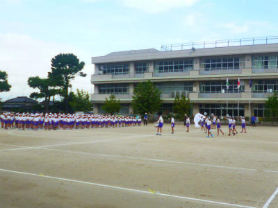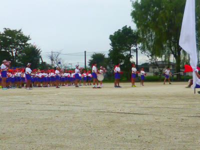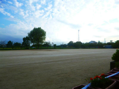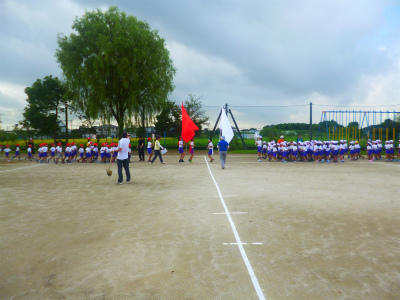 空模様は曇り。今日の全体練習は校庭で行えそうです。