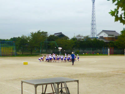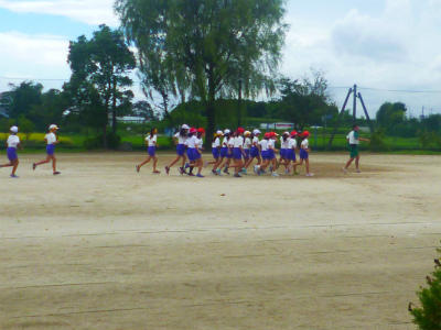 校庭では、リレーのバトンパスの練習がはじまりました。
