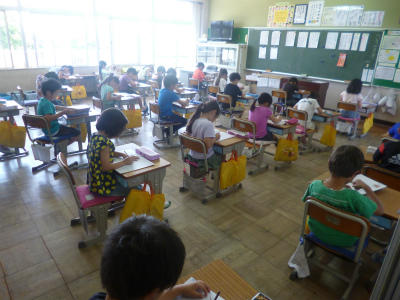 1年生、2年生、姿勢をよくして、課題に取り組んでいます。