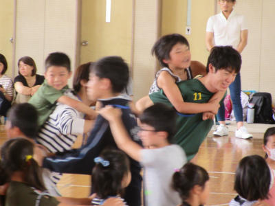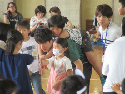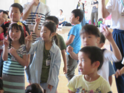 最後に、全員でジャンケン列車と何人組ゲームをやりました。長い列ができて、とても楽しかったです。1年生の女の子が、大活躍していました。