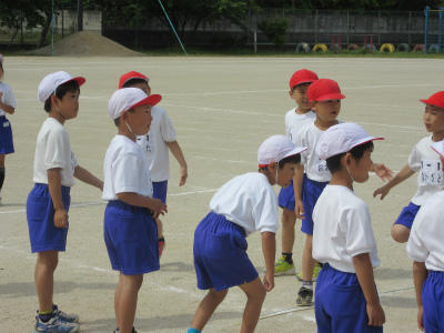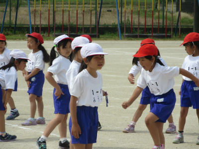 1年生の体育の時間に、『ねこ』と『ねずみ』の追いかけっこのゲームをしていました。担任の先生が、ね、ね、ね、ね……『ねずみ』というと一方の子が逃げるという運動です。